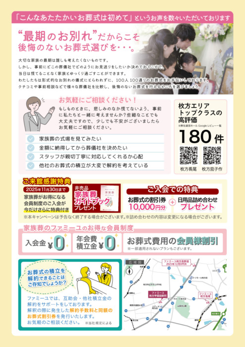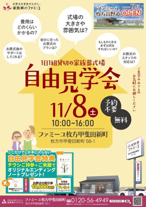 【ファミーユ枚方甲斐田新町】自由見学会開... | 枚方市の葬儀はファミーユホール