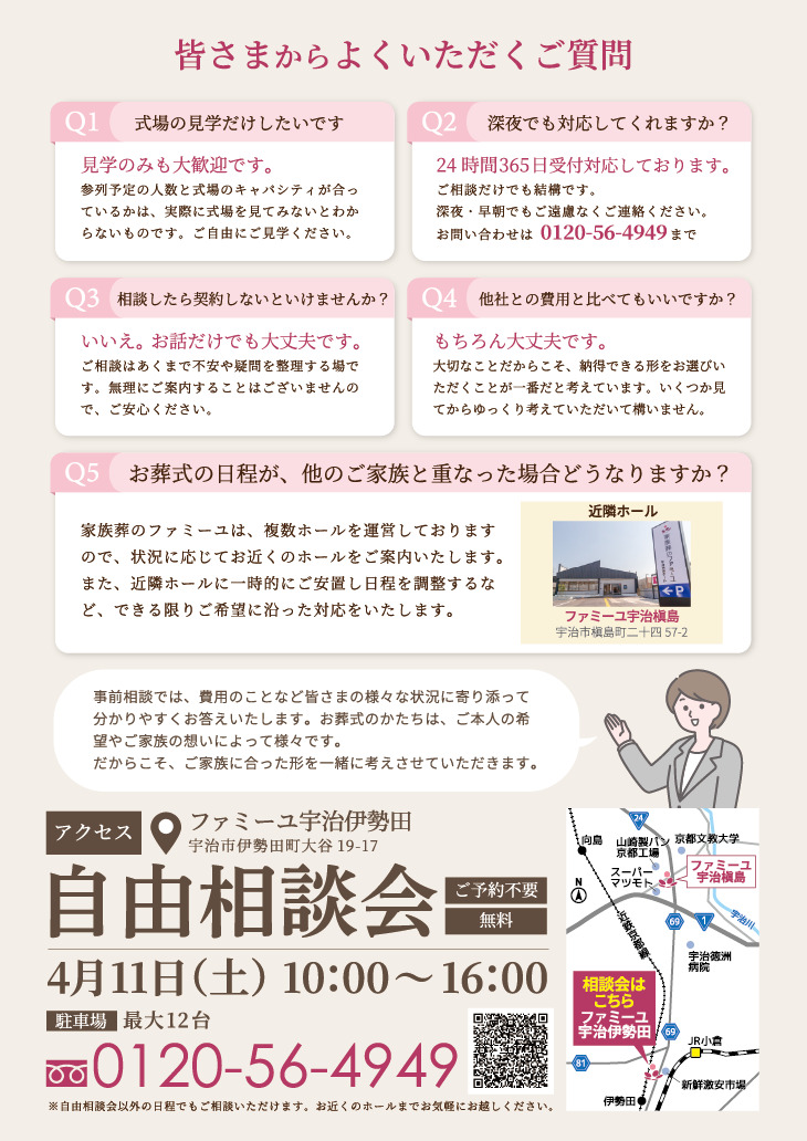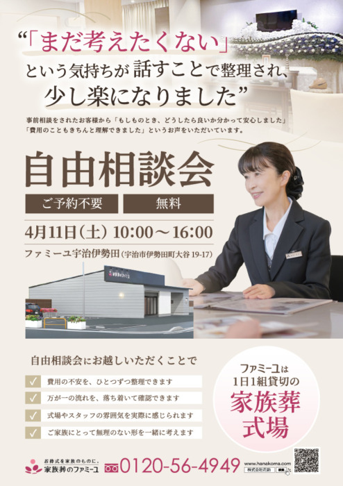 【ファミーユ宇治伊勢田】自由相談会のお知... | 枚方市の葬儀はファミーユホール