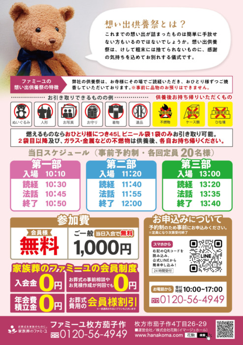 供養料:会員様 無料/非会員様 1,000円(当日入会で供養料無料)