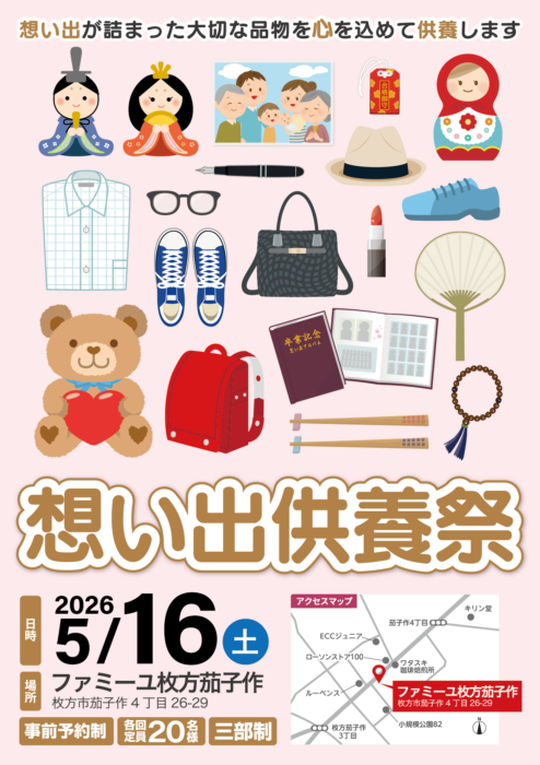 ファミーユ枚方茄子作にて、想い出供養祭を開催いたします。