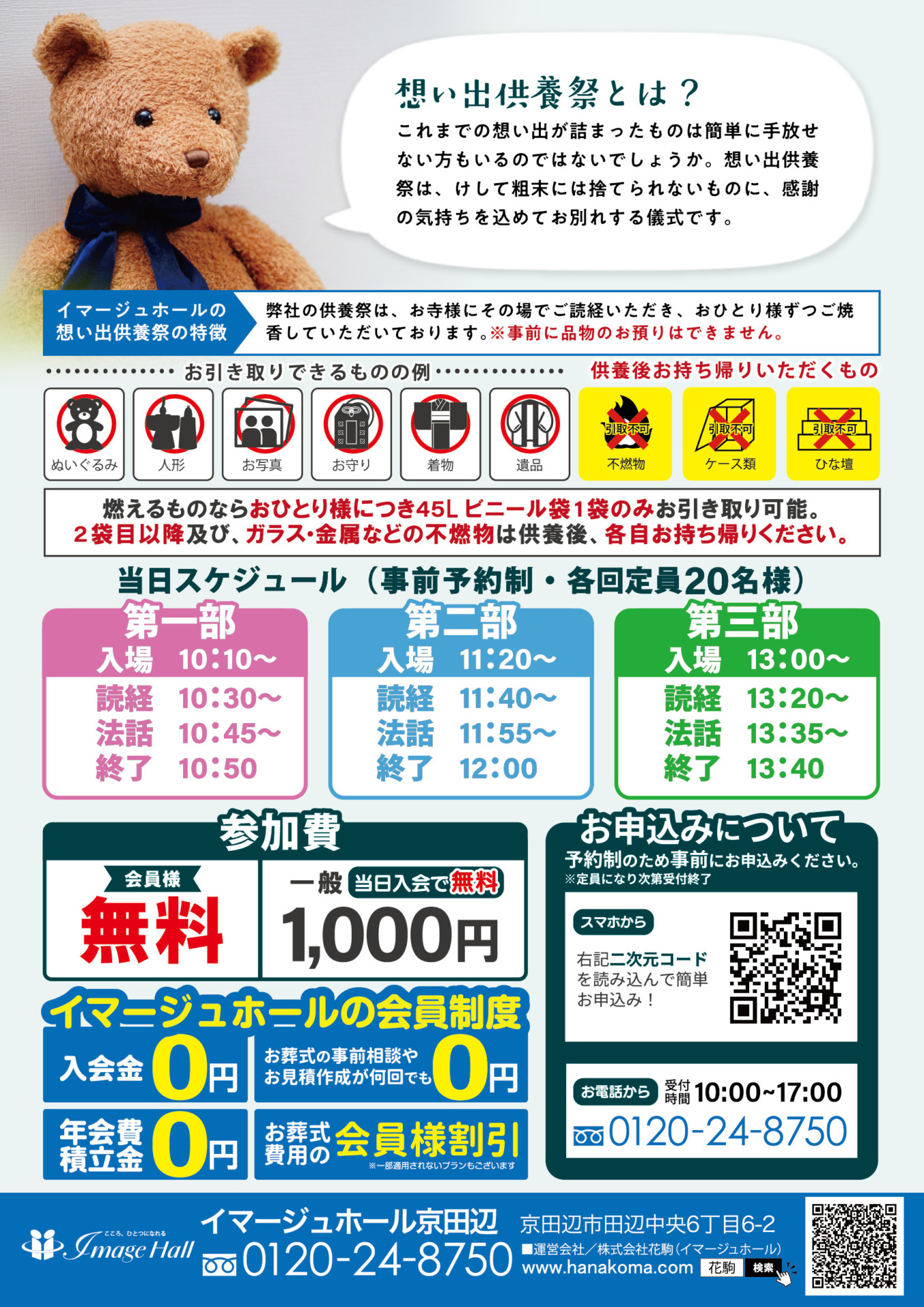 【イマージュホール京田辺】想い出供養祭開催のお知らせ
