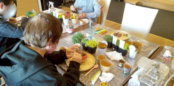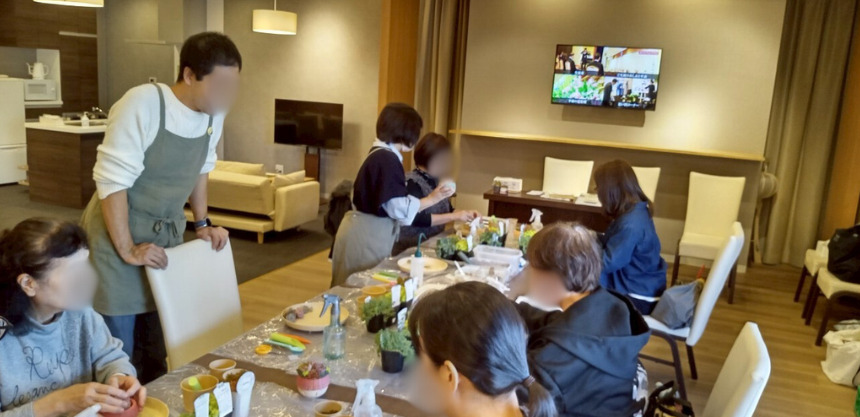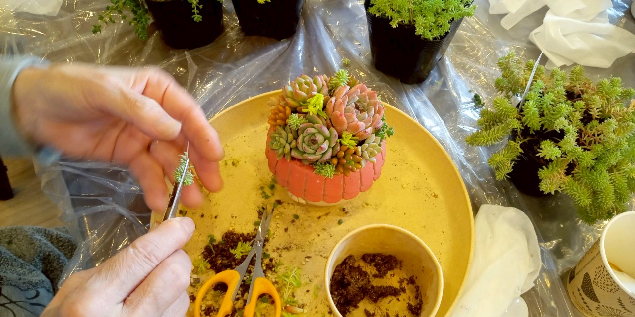 参加者の皆さまは、最初、小さめの多肉植物の挿し植えに苦戦していらっしゃいましたが、先生方の手厚いサポートもあり楽しんで制作することが出来ました。