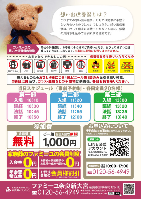 ファミーユ奈良新大宮にて、想い出供養祭を開催いたします。