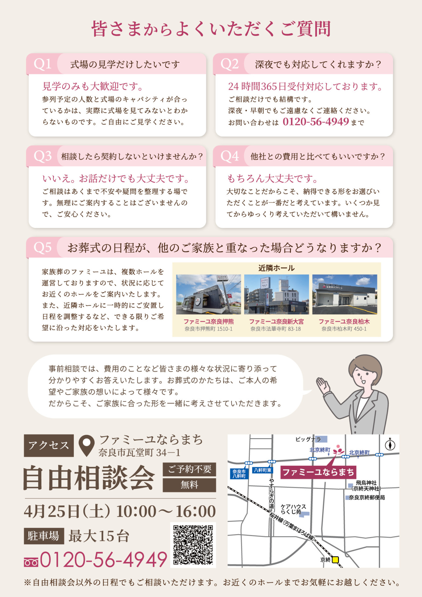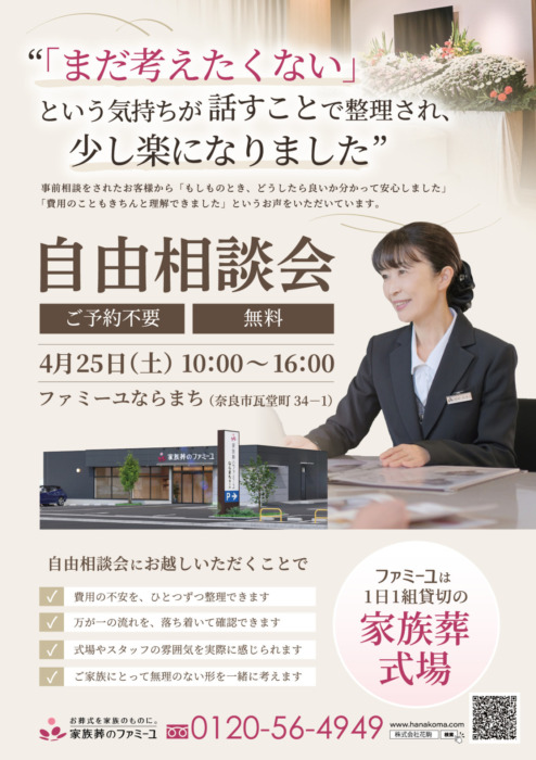 【ファミーユならまち】自由相談会のお知ら... | 奈良市・生駒市の葬儀はファミーユホール