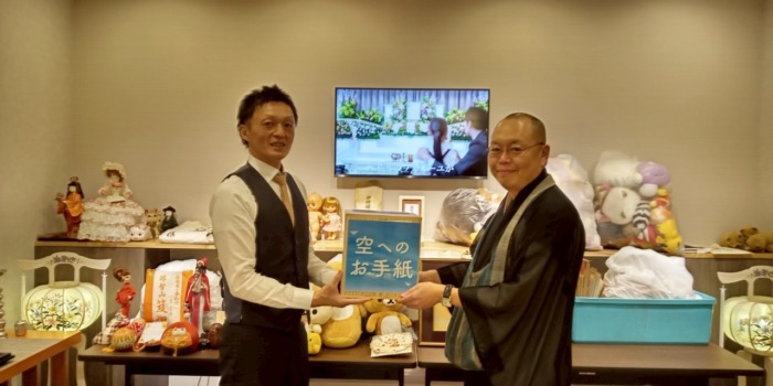 皆さまからお預かりした「空へのお手紙」を、善正寺さまにお渡しさせていただきました。